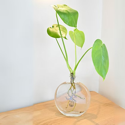 מתנה ייחודית ומרגשת, זר מונסטרה שצומח חודשים באגרטל זכוכית עגול שקוף וצר