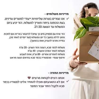 משלוח לאזור המרכז והשרון - 49 ש"ח